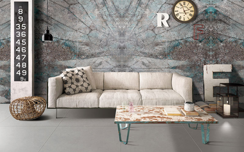 灰綠紋理恣意舒展,如溪流蜿蜒,純粹自然的原生色澤,大面積鋪貼于墻/地面空間,彰顯出無與倫比的靈動韻
