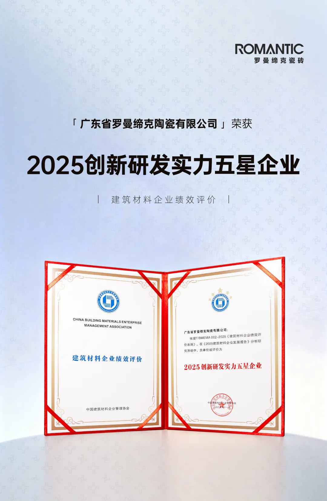 權威認證 五星實力丨羅曼締克瓷磚榮膺“2025創新研發實力五星企