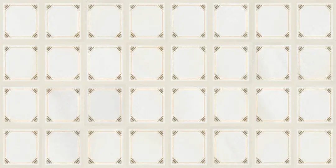 米白色肌底上,菱格紋以嚴(yán)謹(jǐn)?shù)闹刃蚋兄貥?gòu)了冰裂紋的隨機(jī)美學(xué),四周環(huán)繞的精美花紋邊框,恰似古典畫(huà)框的現(xiàn)代演繹。應(yīng)用于衛(wèi)浴間地面之上,菱格的理性秩序與邊框的細(xì)膩雕琢,在碰撞中重構(gòu)東方意境,賦予傳統(tǒng)以摩登張力。
