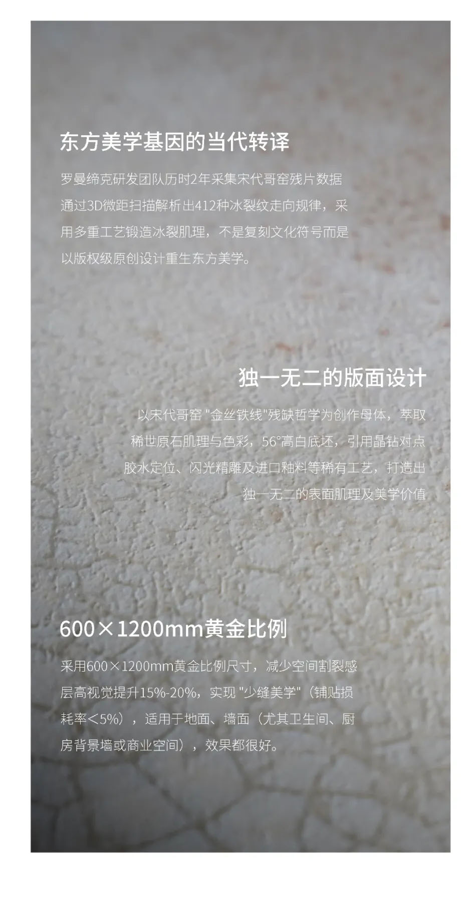 淺霧灰色磚面上,哥窯金絲鐵線紋路如冰河初裂般蔓延。在晨曦時(shí)分的微距視角下,正隨步履移動(dòng)折射出星芒般的細(xì)碎光暈,恰好強(qiáng)化了紋路的生長(zhǎng)方向,悄然開(kāi)啟一場(chǎng)跨越千年的美學(xué)對(duì)話。